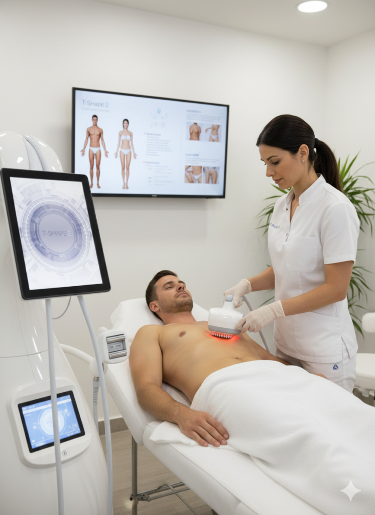 T-Shape 2 uses advanced tech to target fat cells and boost collagen. This makes the treated area look better. The treatment is designed to be both effective and comfortable.